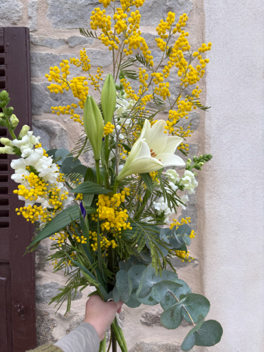 Désormais intallée dans ma boutique à Lézigneux (42600), je propose une large gamme : fleurs coupées, plantes, fleurs séchées et stabilisées, idées cadeaux et déco. Je travaille avec ces dernières afin de proposer une pratique de la fleuristerie et de la décoration florale plus durable.